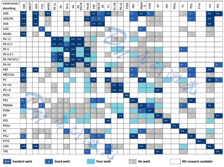 塑料激光焊接原理:通過壓力將兩個(gè)待焊接塑料零部件結(jié)合在一起,將一束紅外激光定位于待粘結(jié)部位,激光束透過上層透光材料,被下層材料吸收,吸收的激光能量轉(zhuǎn)換成熱能,由于兩層材料被壓在一起,熱能從吸收層傳導(dǎo)到透光層上,使得兩層材料熔化并結(jié)合。同時(shí)由于材料本身的熱膨脹擴(kuò)張產(chǎn)生內(nèi)部壓力,內(nèi)部壓力與外部壓力共同作用確保了兩部分的堅(jiān)固焊接。對于產(chǎn)品本身是不吸光的下層材料,需要添加吸收劑進(jìn)行處理。